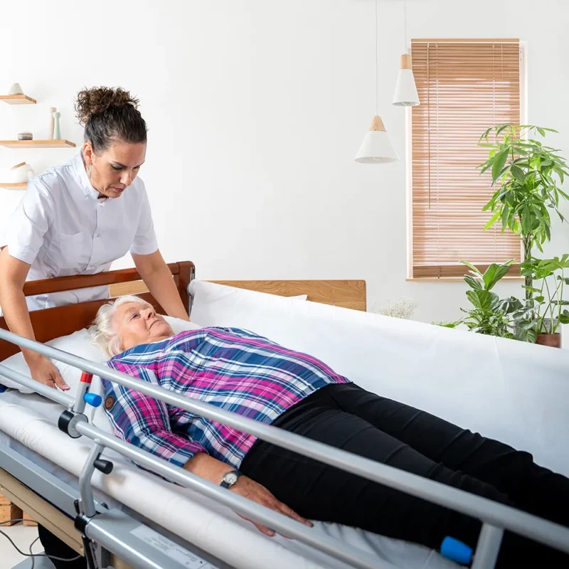 Veilig cliënt verplaatsen en wentelen met ergonomische bedhekken omhoog