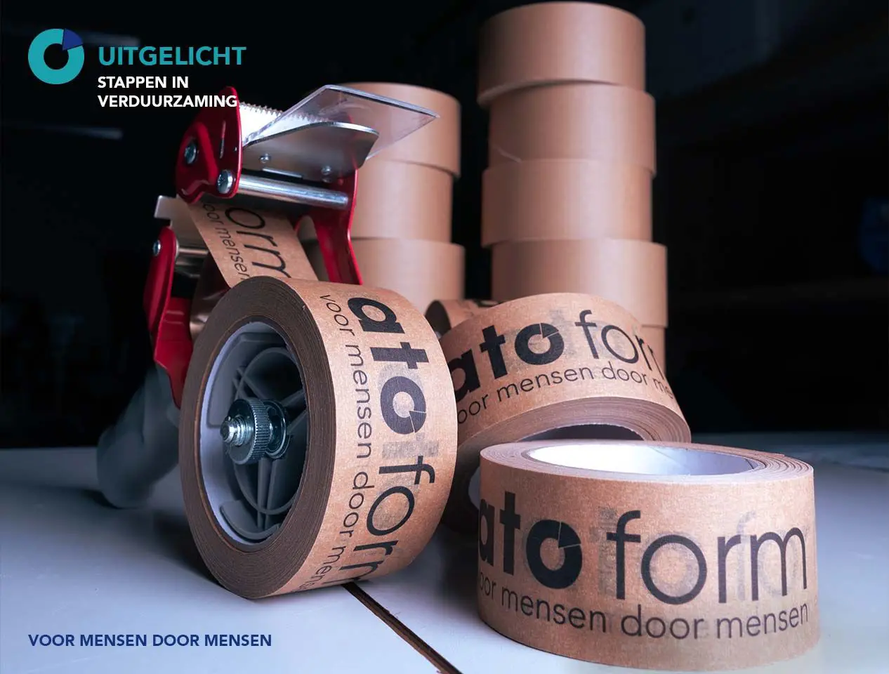 Samen met onze papieren tape om onze dozen dicht te plakken zijn we weer een stapje verder om plastic te weren uit ons logistieke proces.